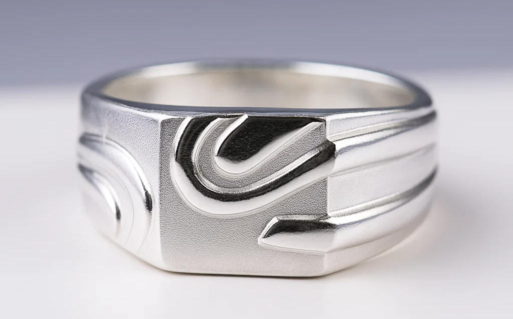 Add a touch of contemporary elegance to your jewellery collection with this 925 sterling silver engraved band ring. Designed with a bold, geometric pattern, this ring combines artistry with simplicity, making it a perfect choice for men who prefer modern minimalism with a traditional silver shine. Crafted from high-quality sterling silver, it offers both durability and timeless appeal. The wide band with artistic engraved lines gives it a unique identity, making it suitable for everyday wear as well as special occasions.