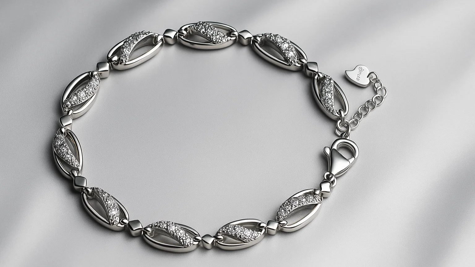Elevate your style with this stunning 925 Sterling Silver Bracelet, designed with interlinked oval motifs embellished with dazzling micro stones. Its refined design blends contemporary elegance with timeless charm, making it the perfect accessory for both daily wear and special occasions.