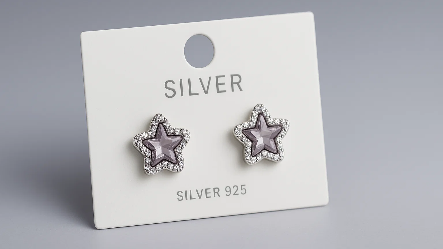 925 Sterling Silver Star Stud Earrings – Sparkling Crystal Accent Design