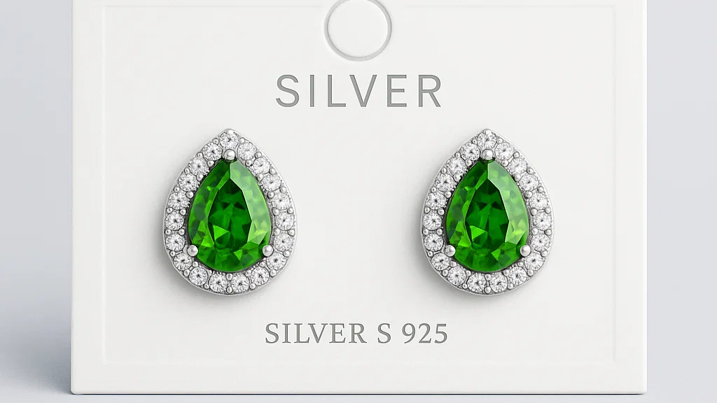 925 Sterling Silver Teardrop Emerald Green Stud Earrings – Halo Crystal Design