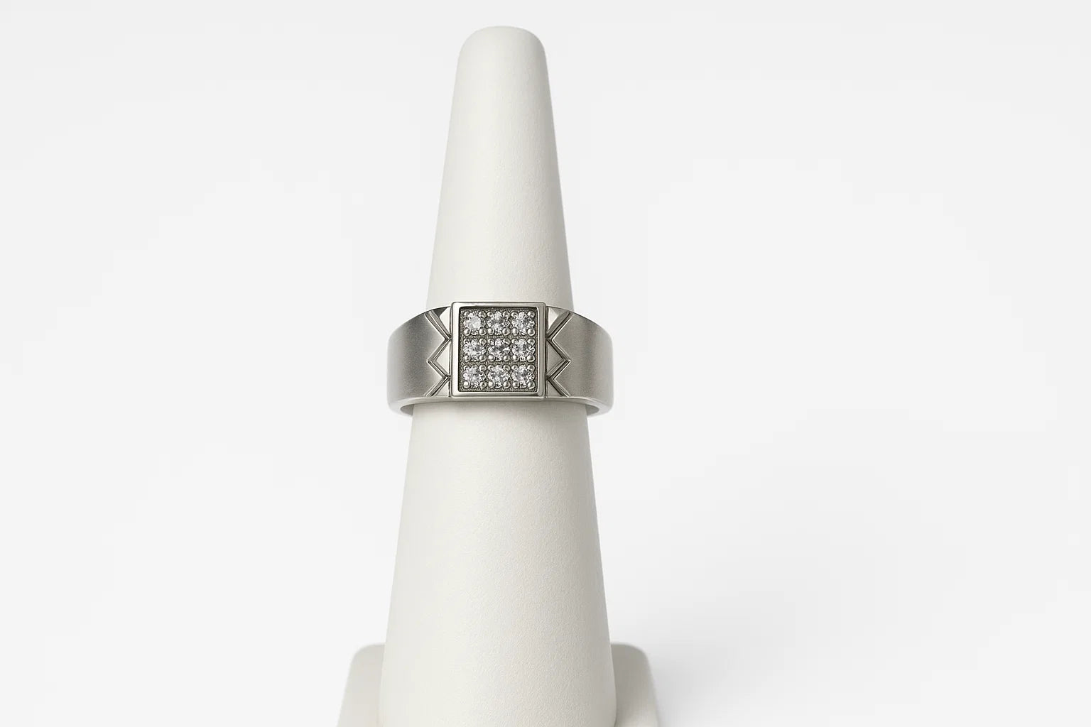 Geometric zig-zag accent with square stone setting for a modern look