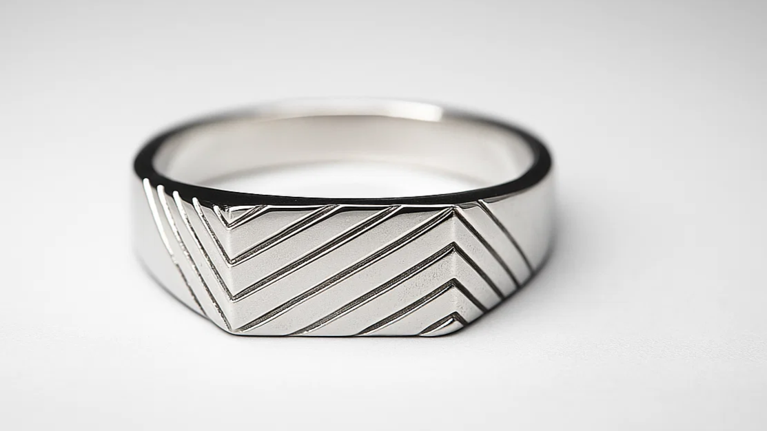 Design: Chevron engraved flat-top band