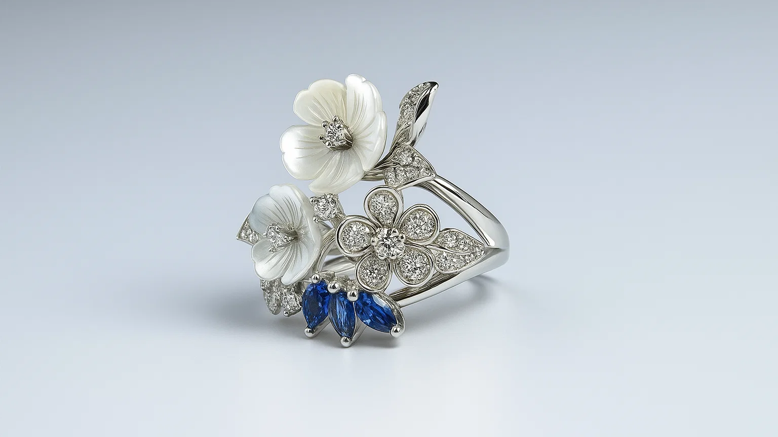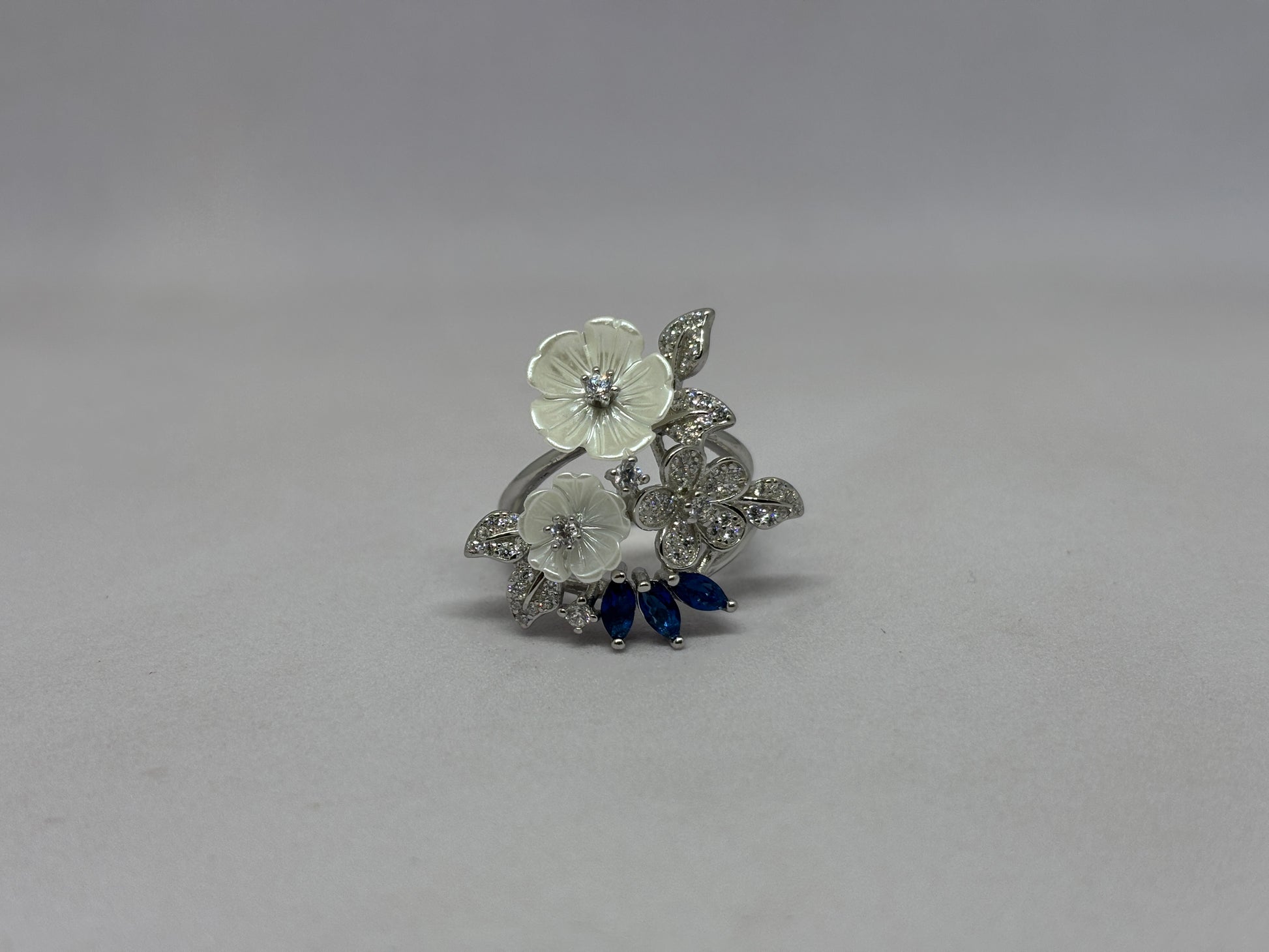 Elevate your elegance with the Blue Blossom Harmony 925 Silver Ring, a masterpiece of floral artistry. Crafted in pure 92.5 sterling silver, this exquisite ring features delicately carved white flowers with shimmering petals and deep blue marquise stones that symbolize serenity and grace. The detailed leaf patterns enhance its luxurious charm, making it perfect for festive wear, evening events, or gifting someone special. Lightweight, hypoallergenic, and stunningly detailed — it’s more than jewellery, it’s a statement of timeless beauty.