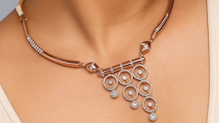 Designer rose gold plated silver necklace with geometric circle motifs